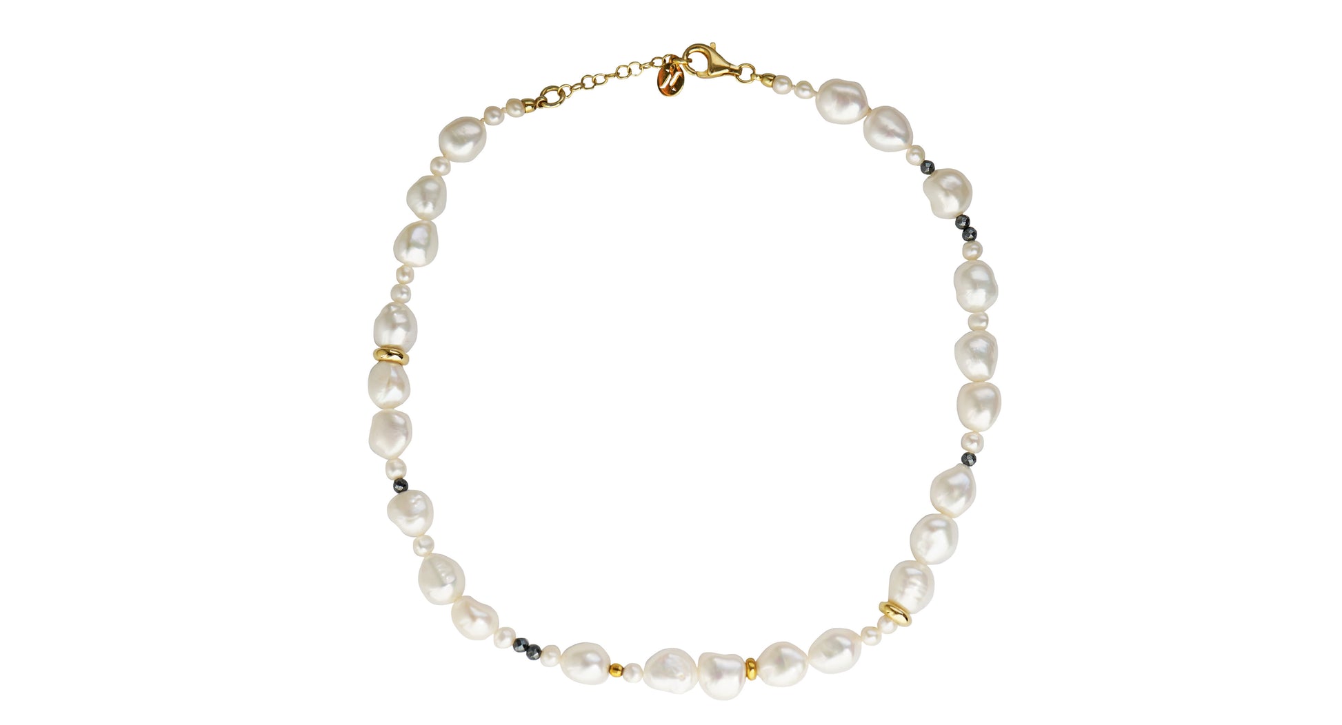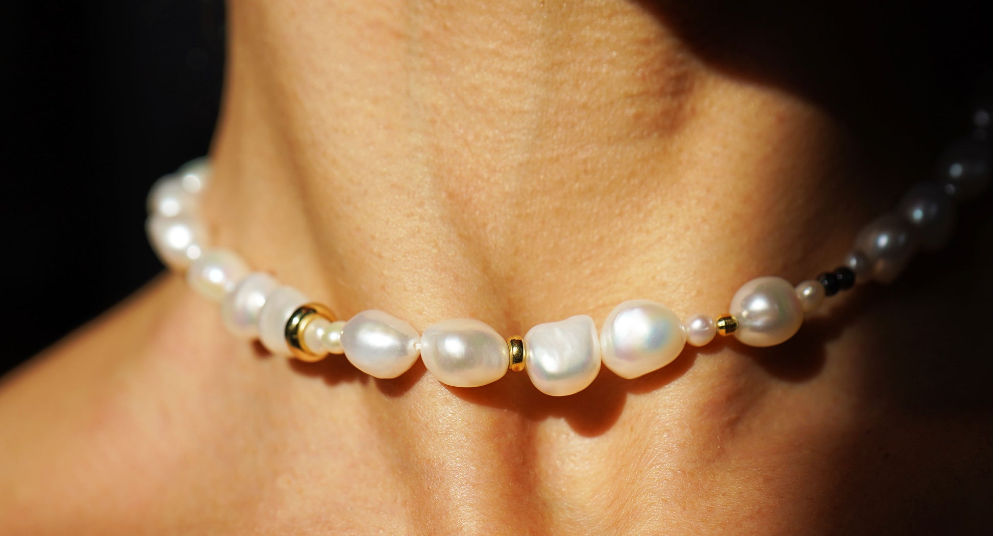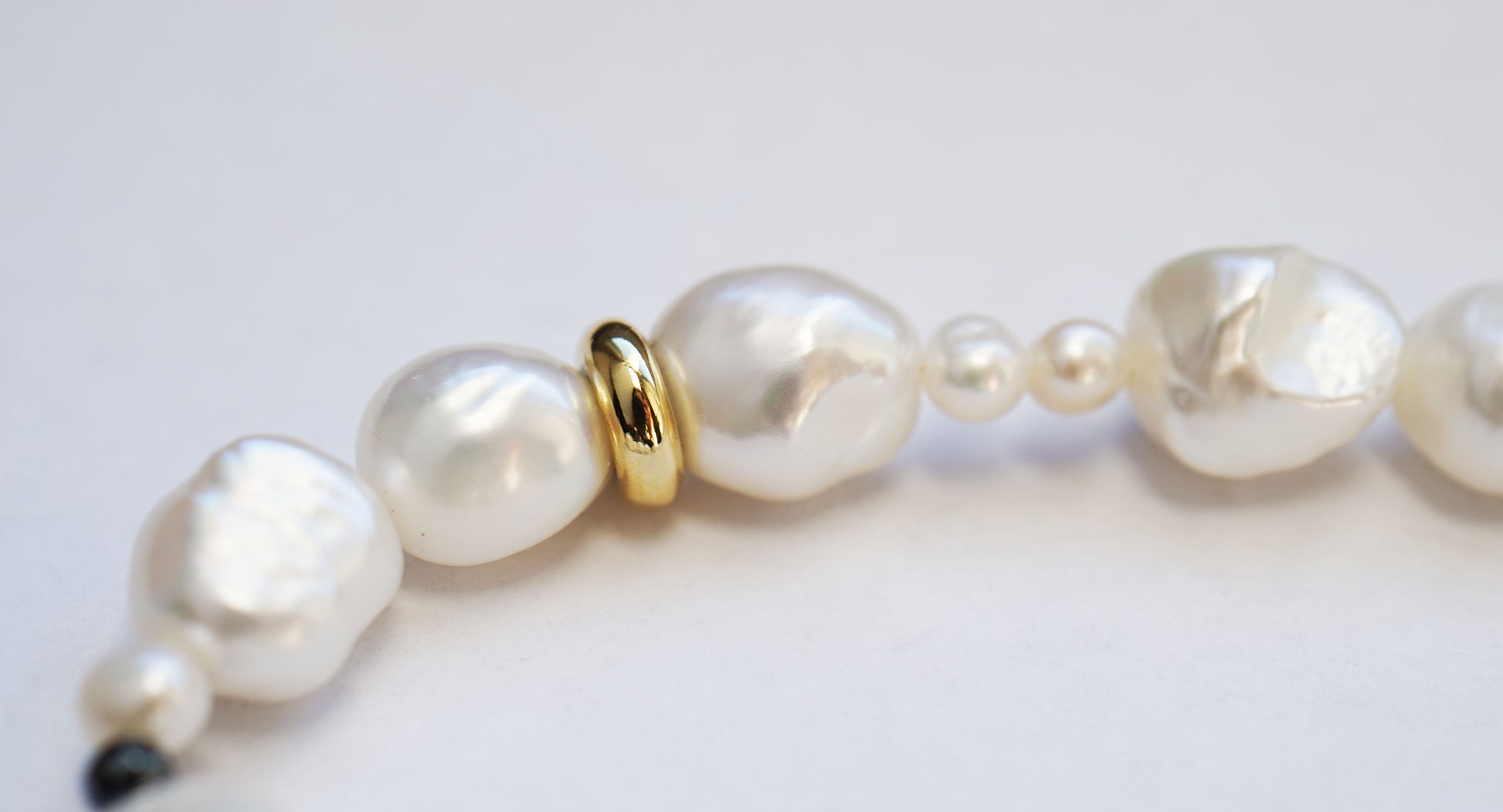 Un omaggio alla bellezza selvaggia della natura: ogni collana è unica, con perle barocche dalle forme diverse, proprio come le rocce scolpite dalla potenza del mare lungo la costa di Biarritz.