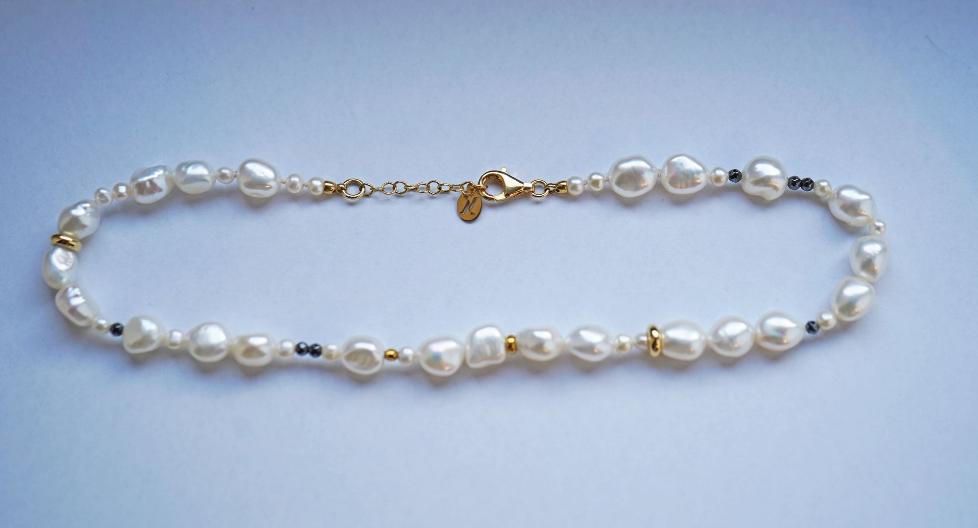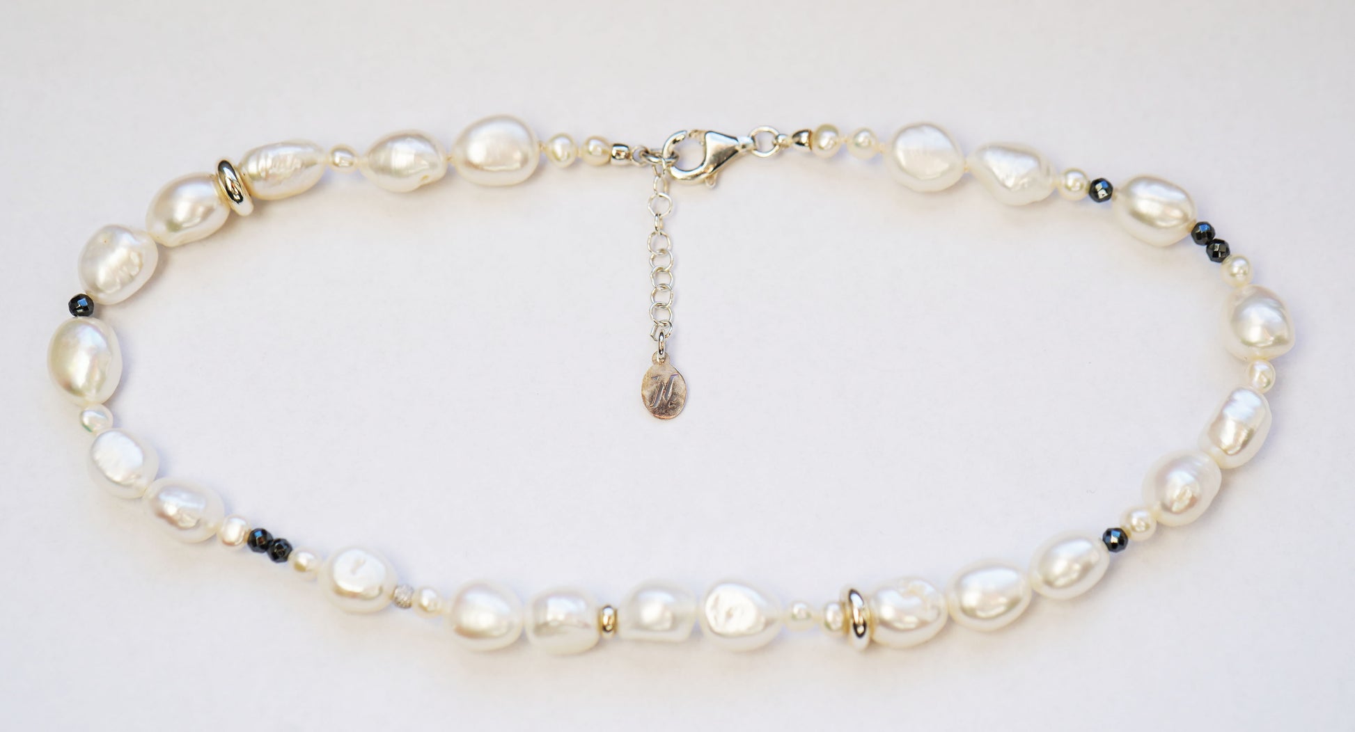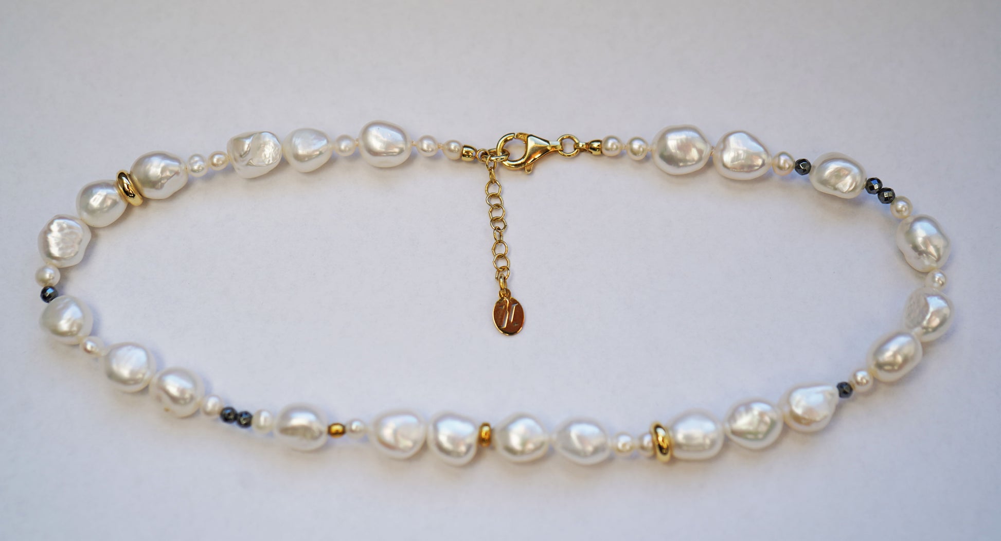Interamente infilato a mano da Veronica Altieri, perla per perla.