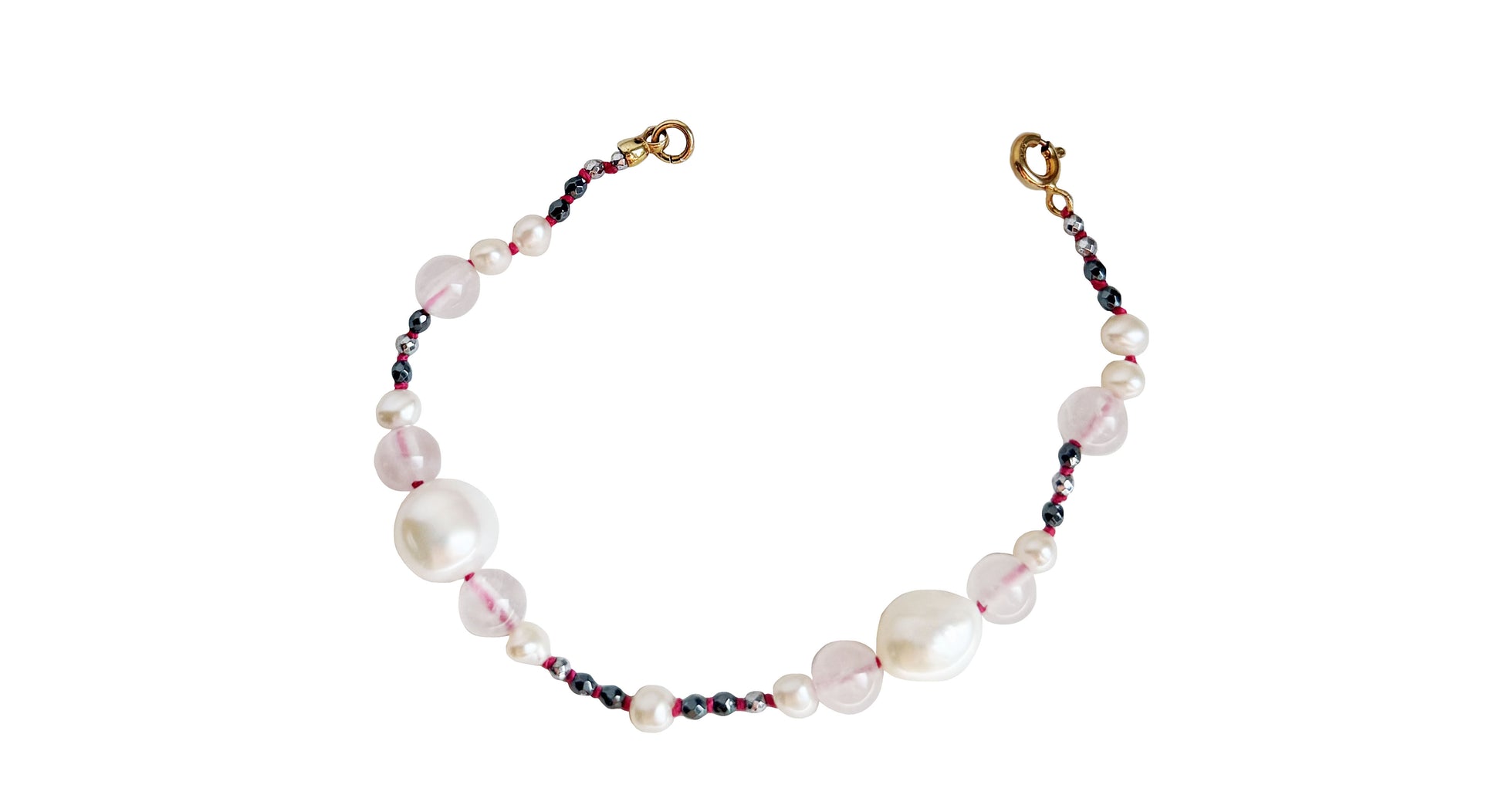 Con il braccialetto bolle, le bolle di sapone toccheranno la tua pelle senza scoppiare! Perle d'acqua dolce, quarzo rosa ed ematite ti trasporteranno in un mondo magico, dove la meraviglia dell'infanzia prende vita e ogni bolla che sale verso il cielo rappresenta desiderio che aspetta di avverarsi.