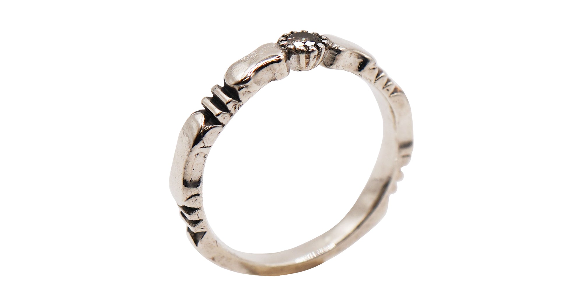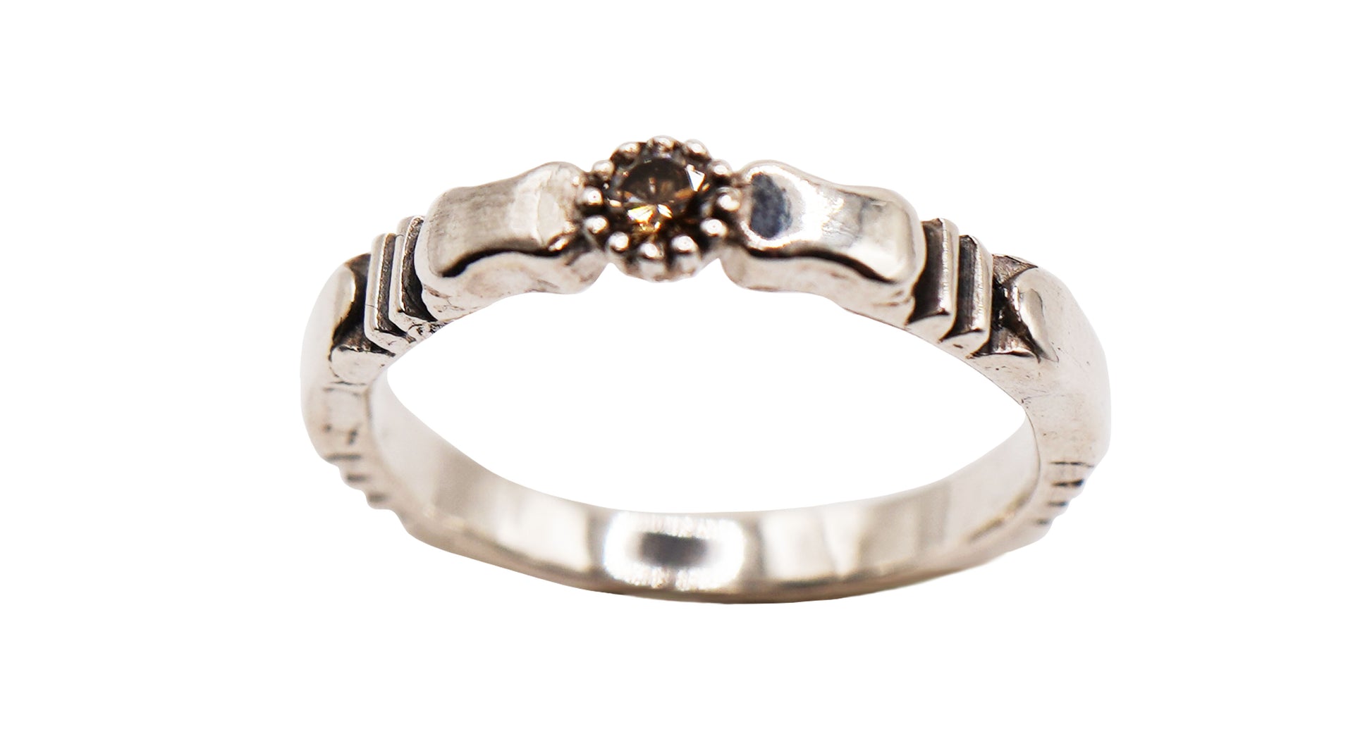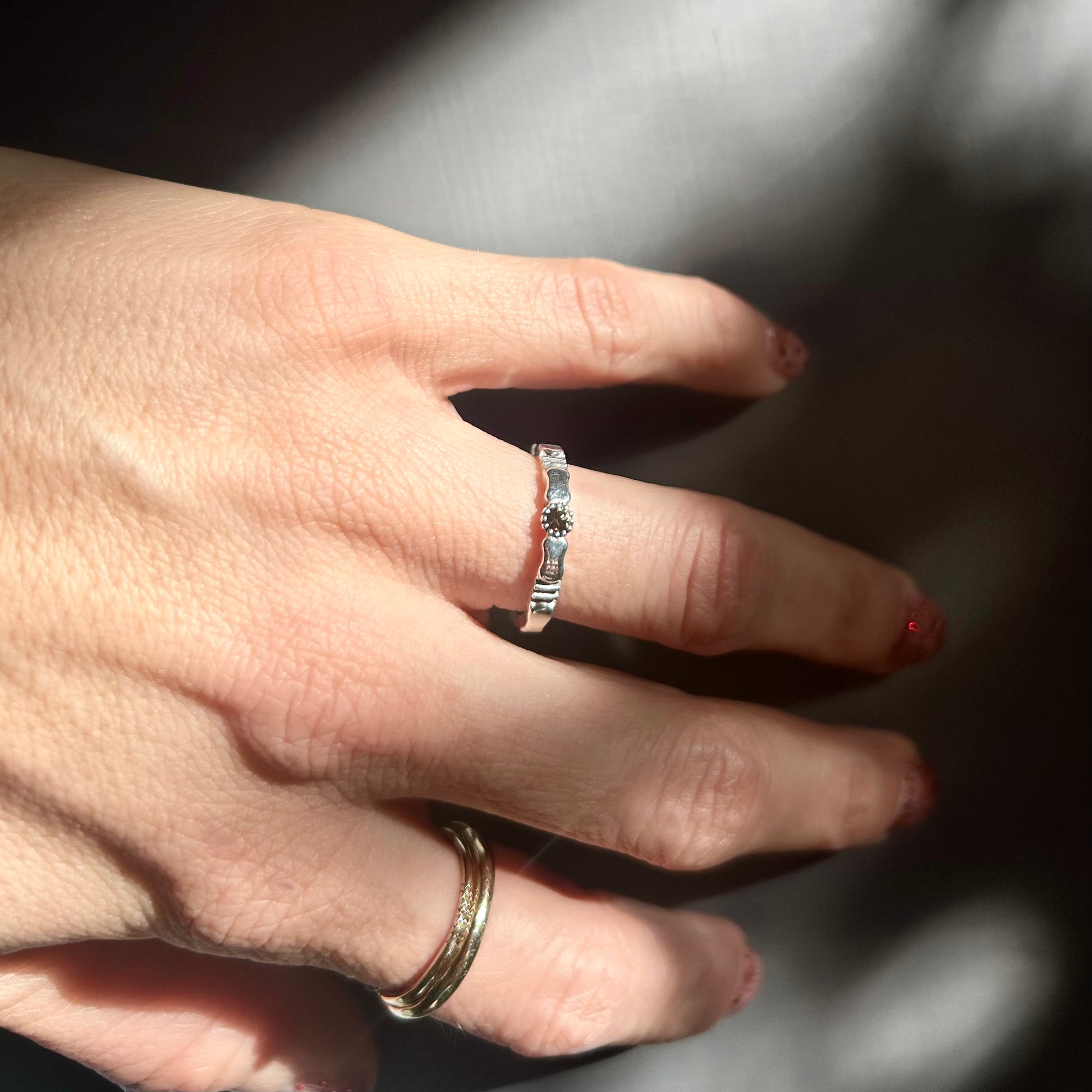 La sua fascia in argento, impreziosita da un diamante Cognac, richiama l'eleganza degli anelli georgiani e il fascino delle antiche dinastie, reinterpretati attraverso una finitura moderna dalle superfici pulite e dai dettagli essenziali. Discreto, ma profondamente magnetico.
