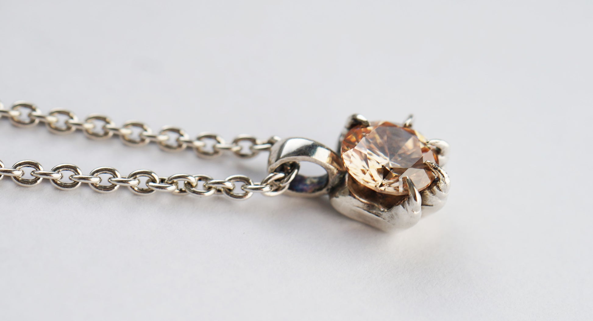 La mano del ghepardo tiene una pietra semipreziosa di 8 mm.