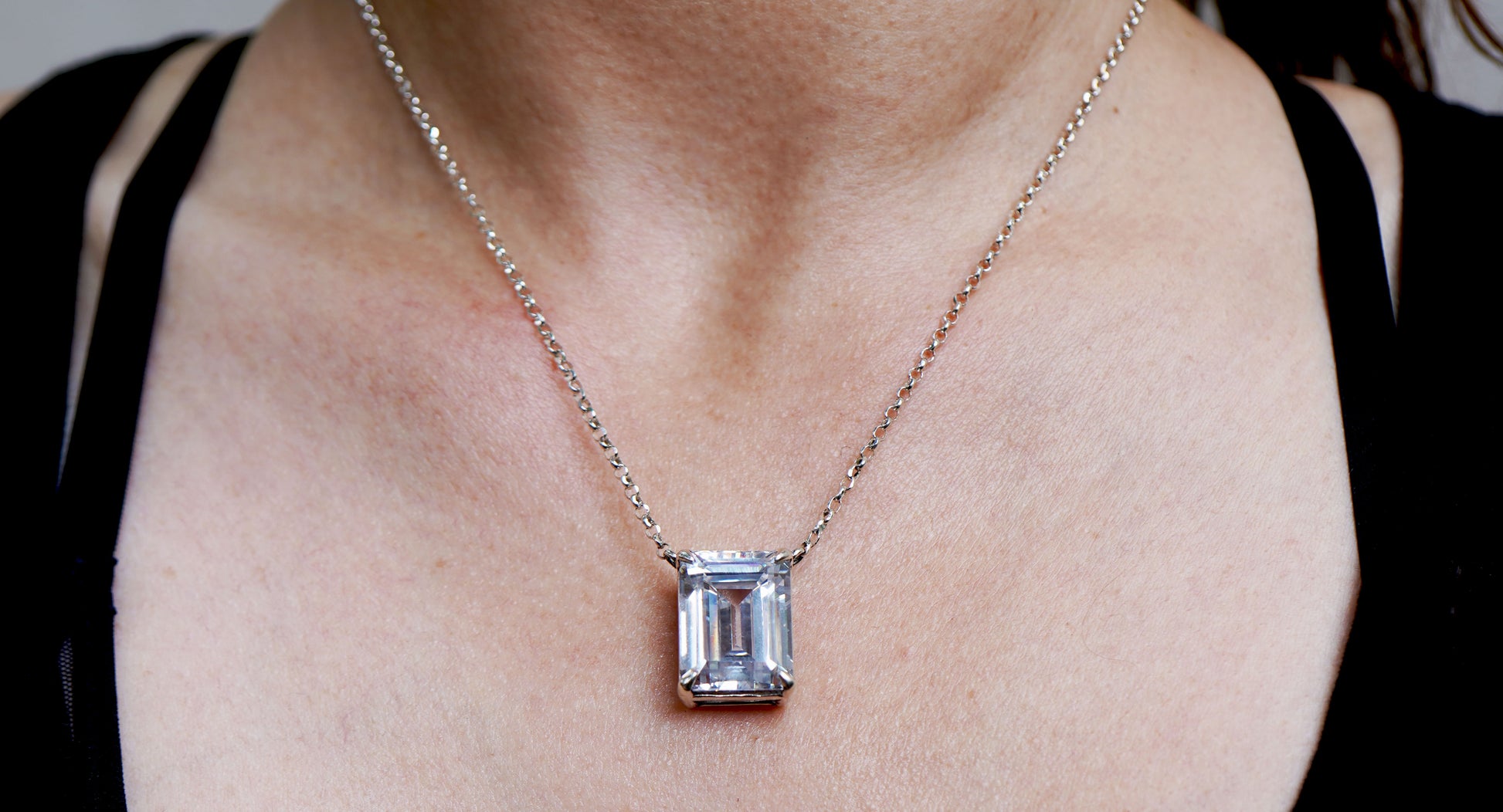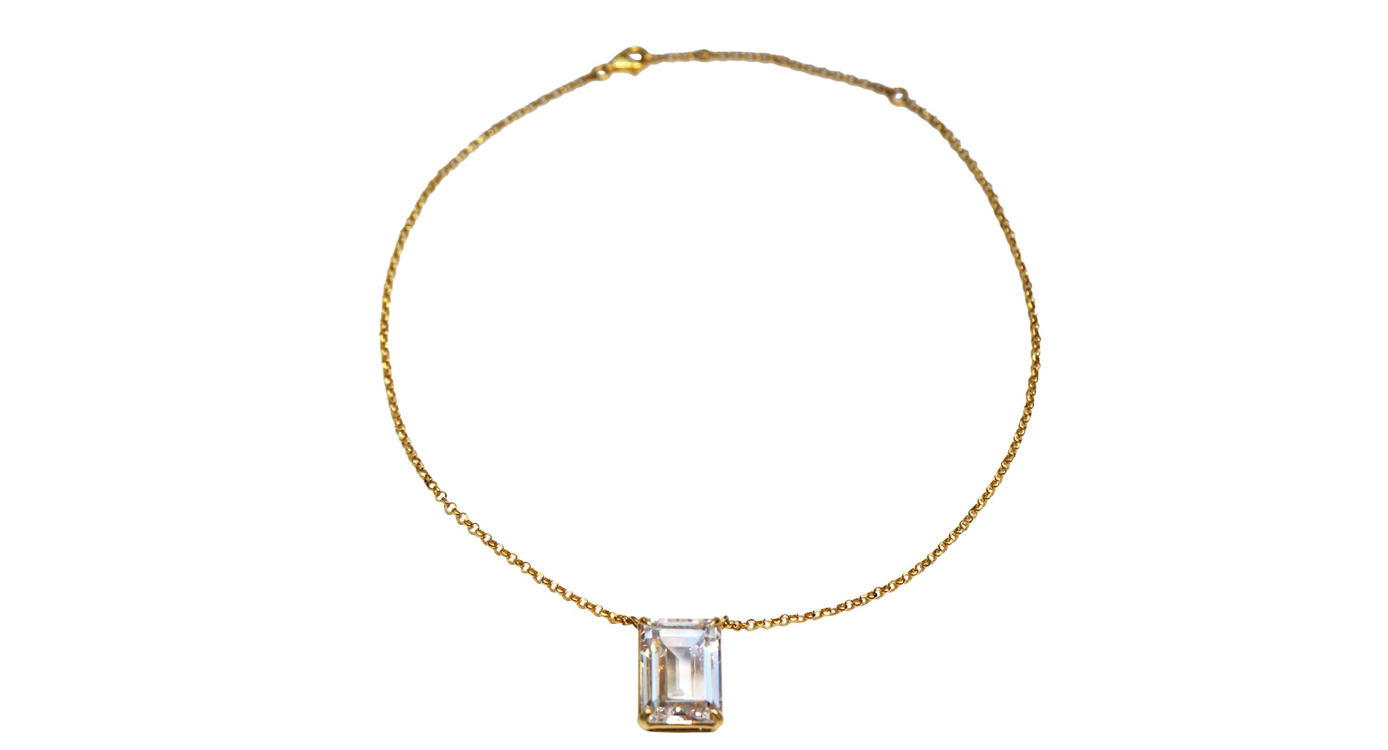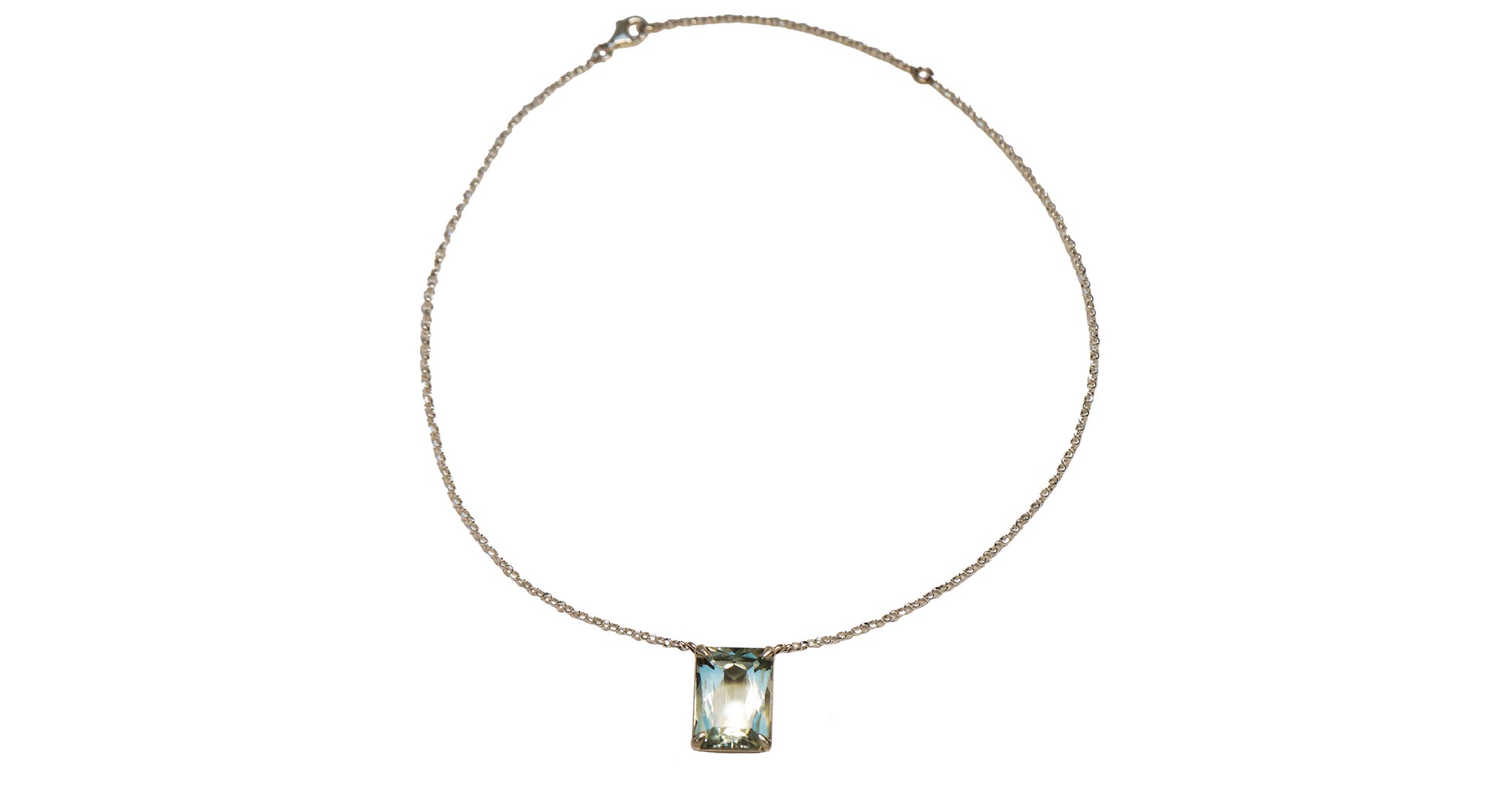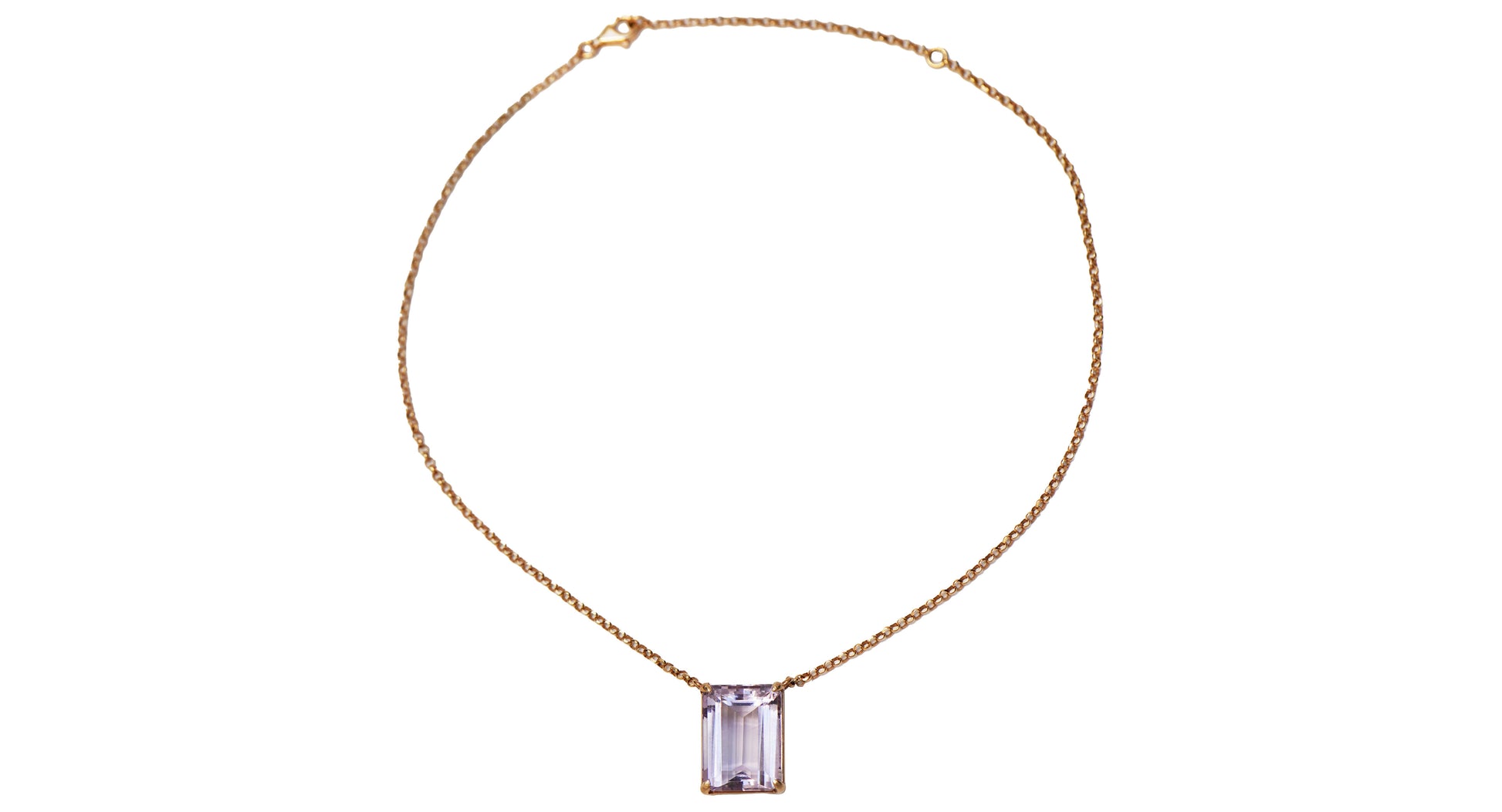 La collana L. simboleggia il perfetto equilibrio tra forza e leggerezza. La sua pietra audace sembra fluttuare, eppure è saldamente trattenuta da quattro punte discrete e precise, come dita che afferrano senza stringere.