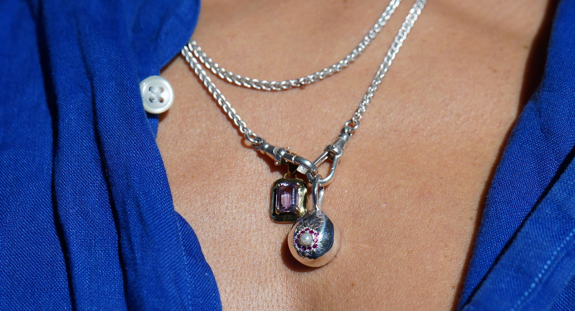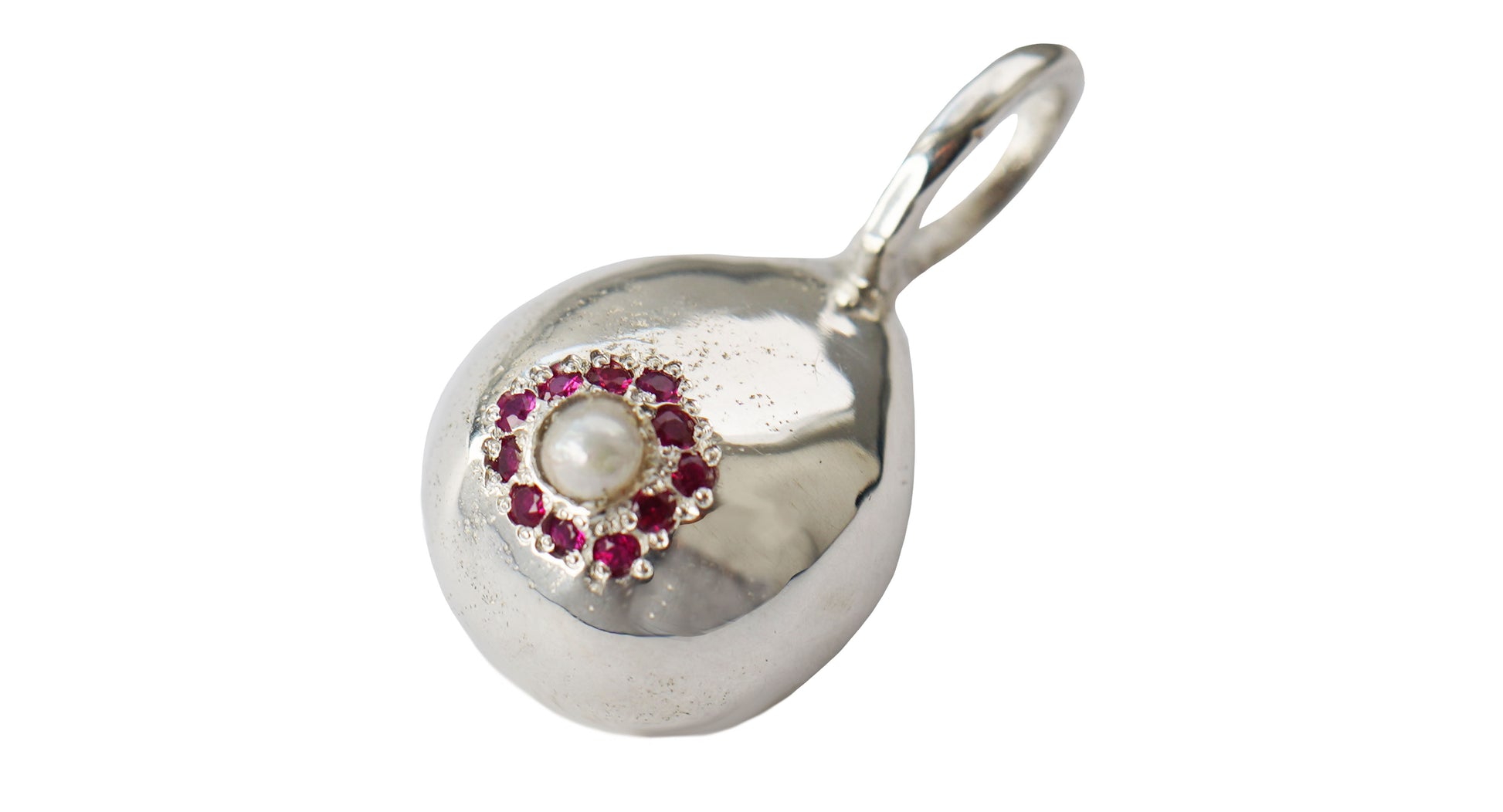 Argento e Perla con 11 Rubini, Niki è il pendente che tutti dobbiamo avere, irriverente ma discreto e morbidissimo.