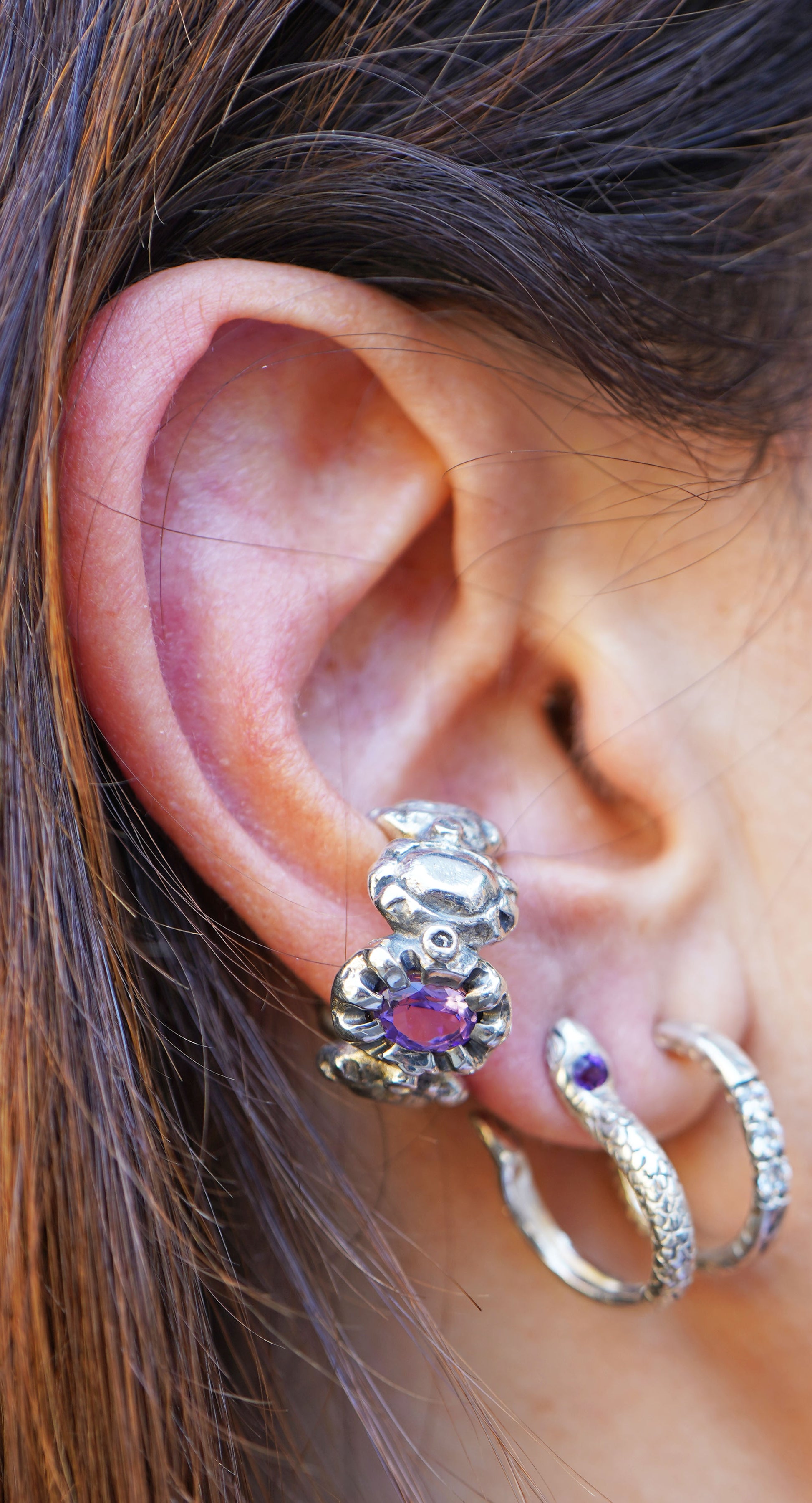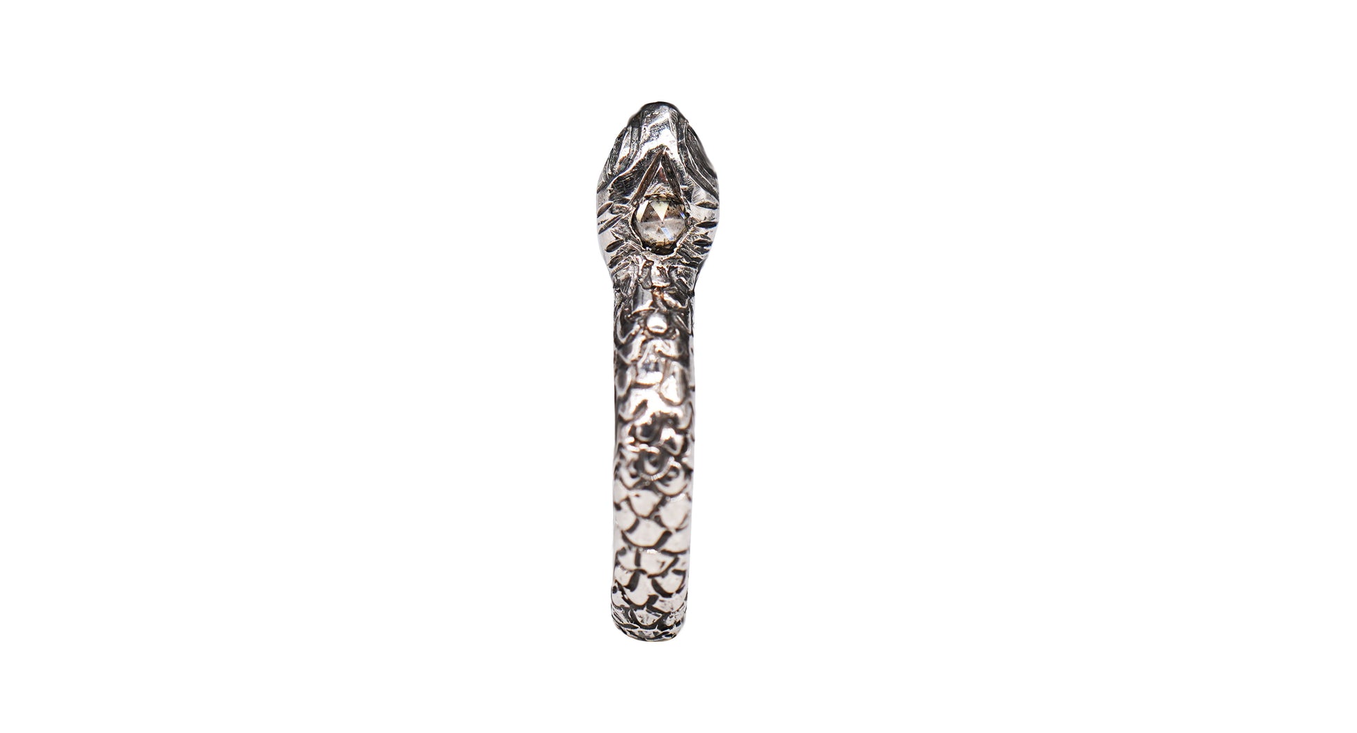 Lasciatevi mordere da questo serpente d'argento che porta sulla testa un diamante taglio rosa da circa 0,04 ct, o altre pietre preziose.