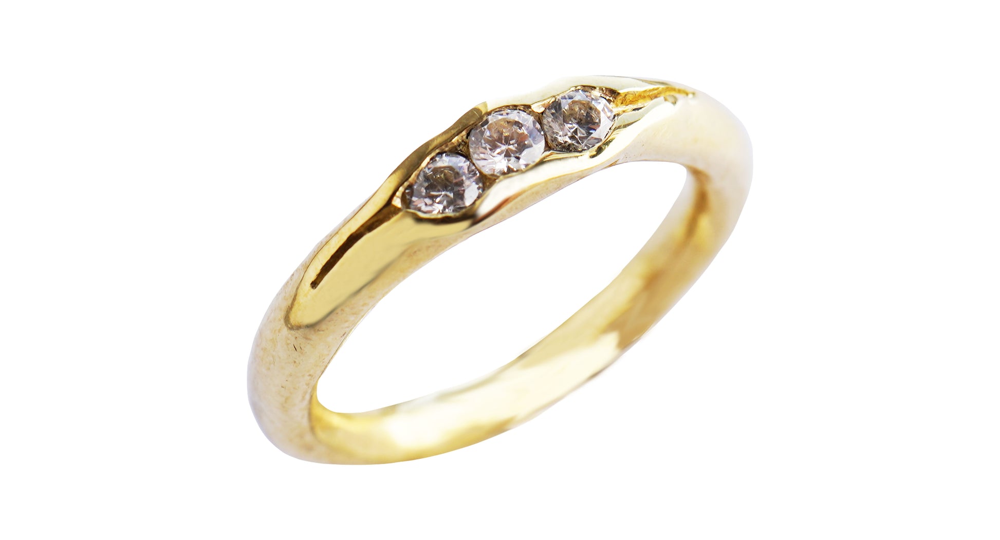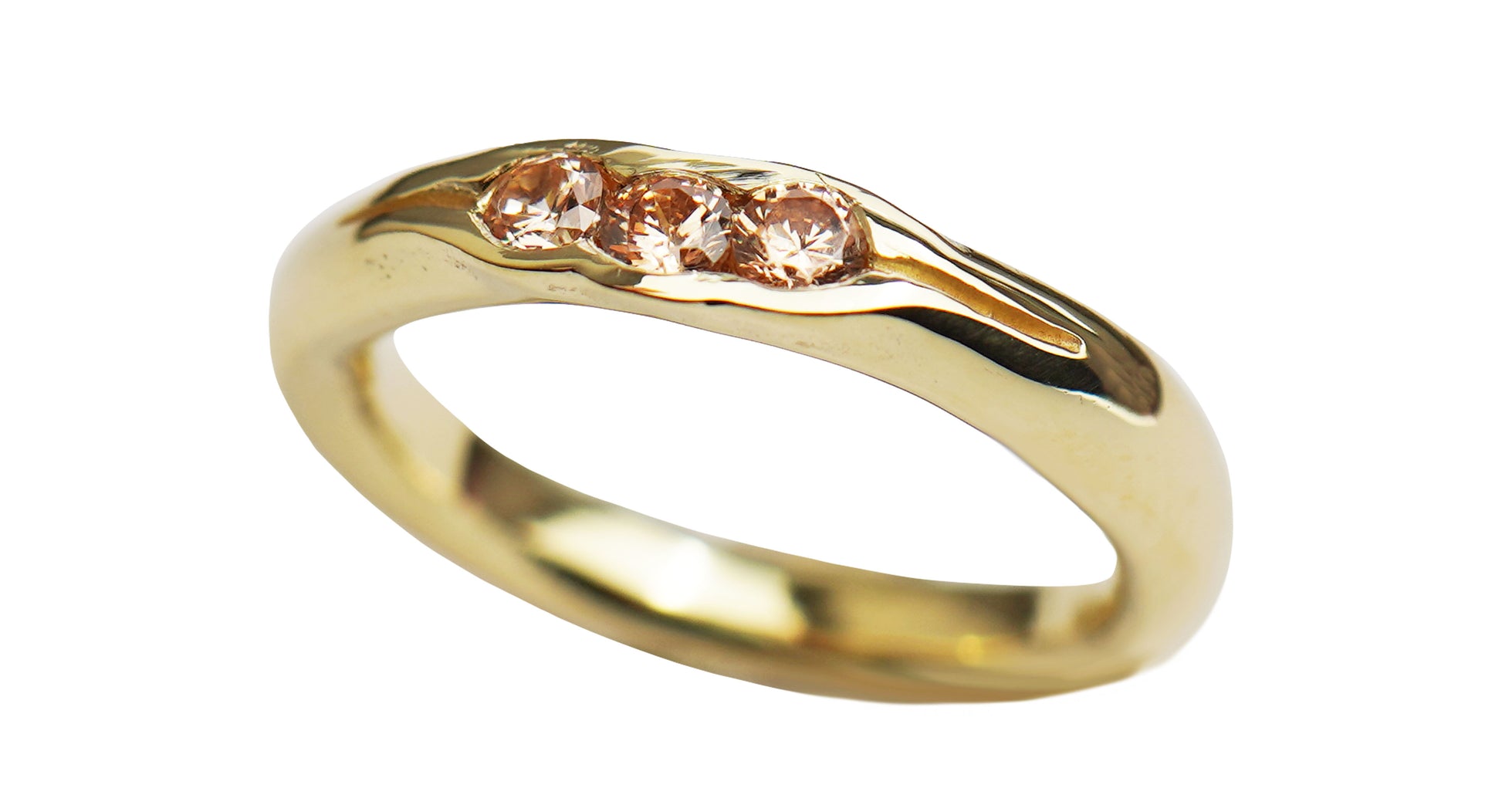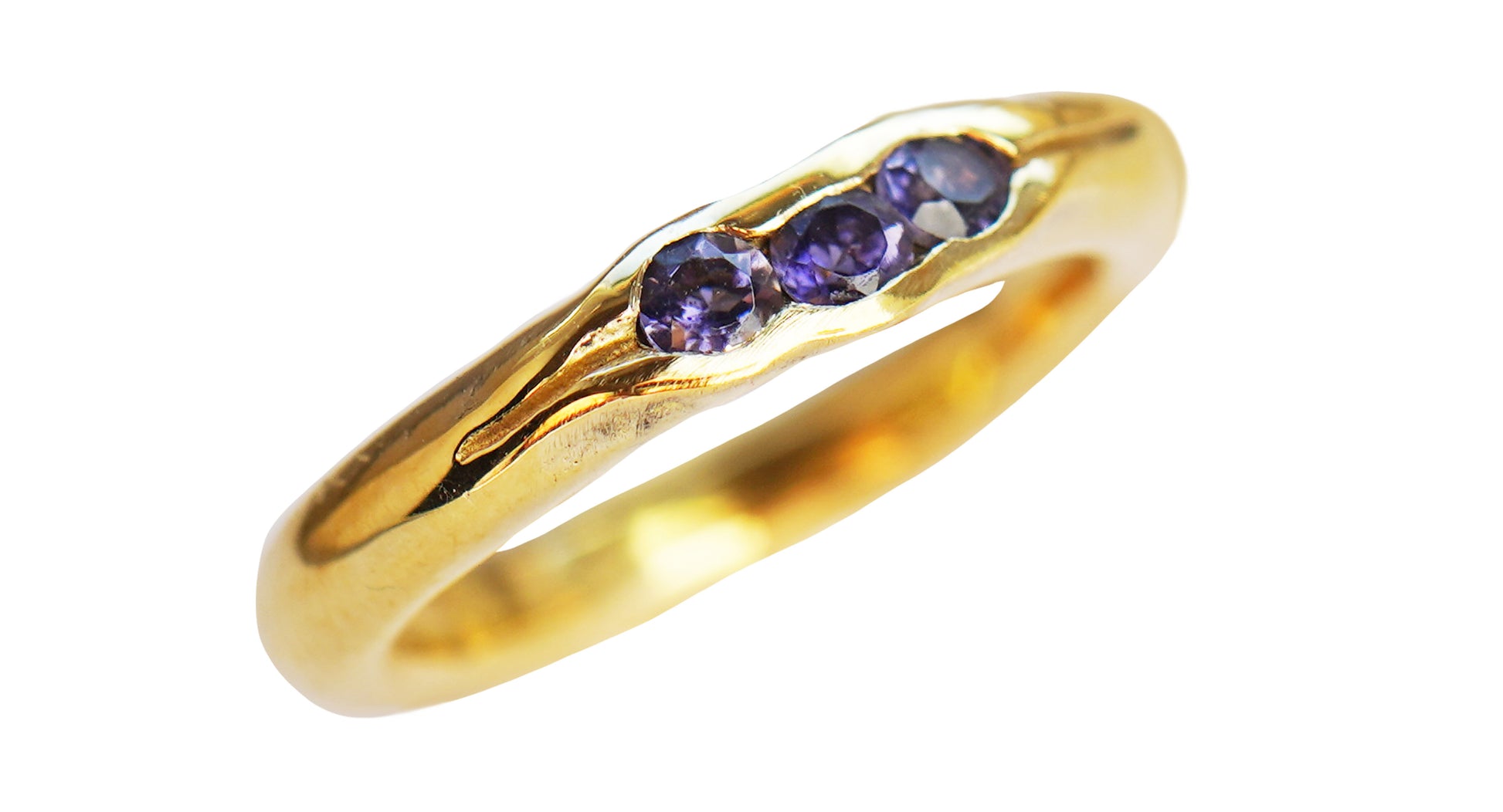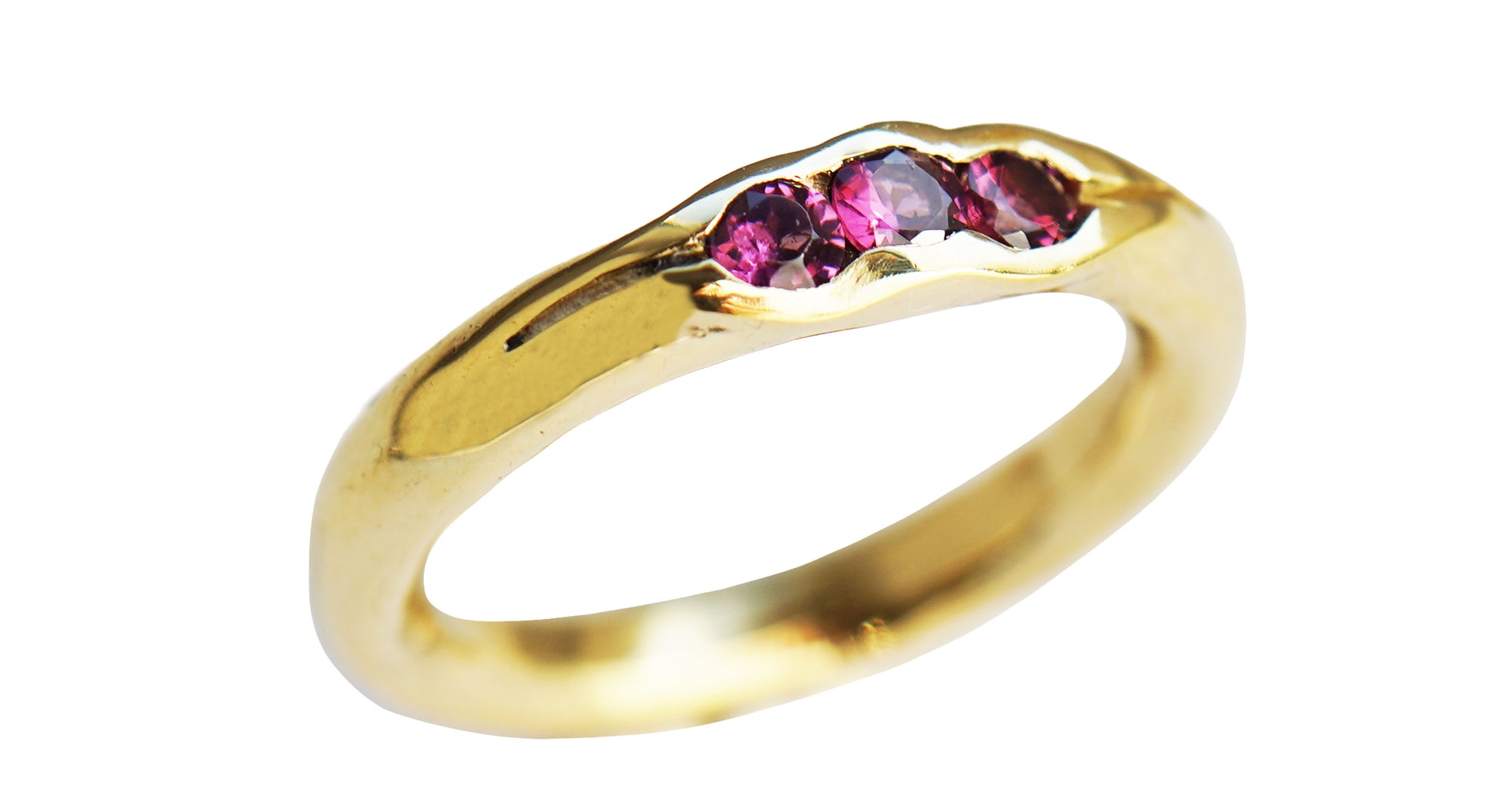 Fascia in bronzo giallo con tre pietre preziose o semipreziose