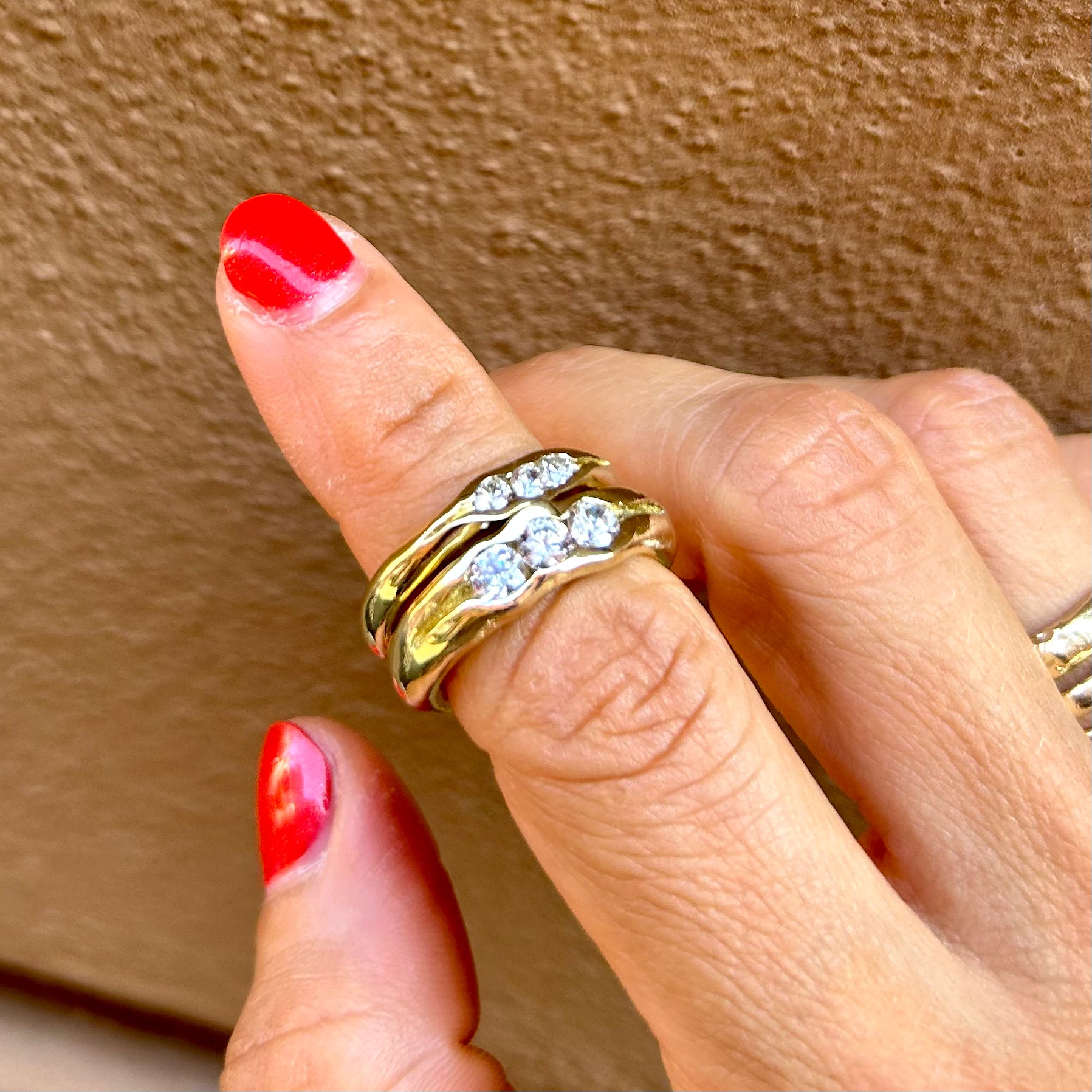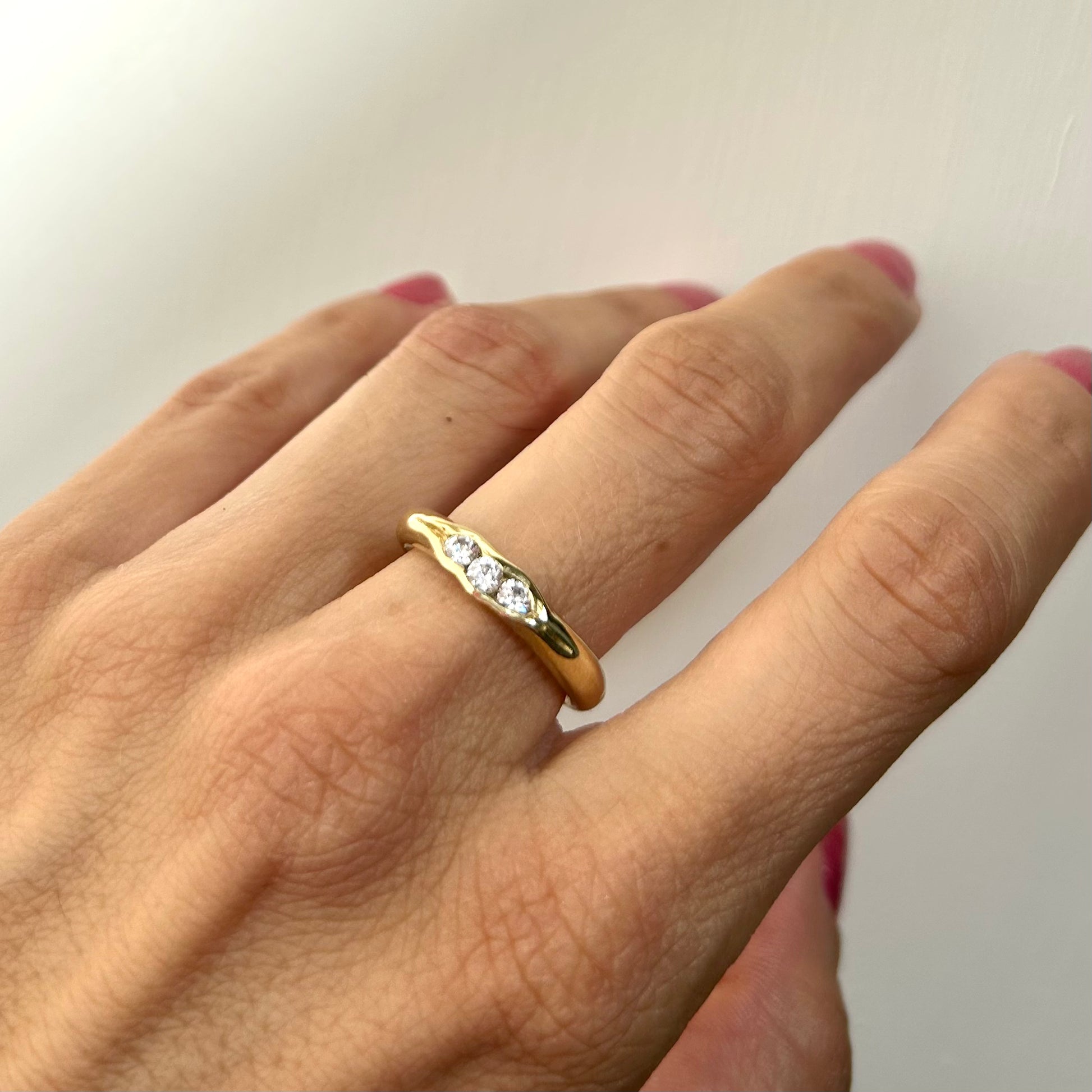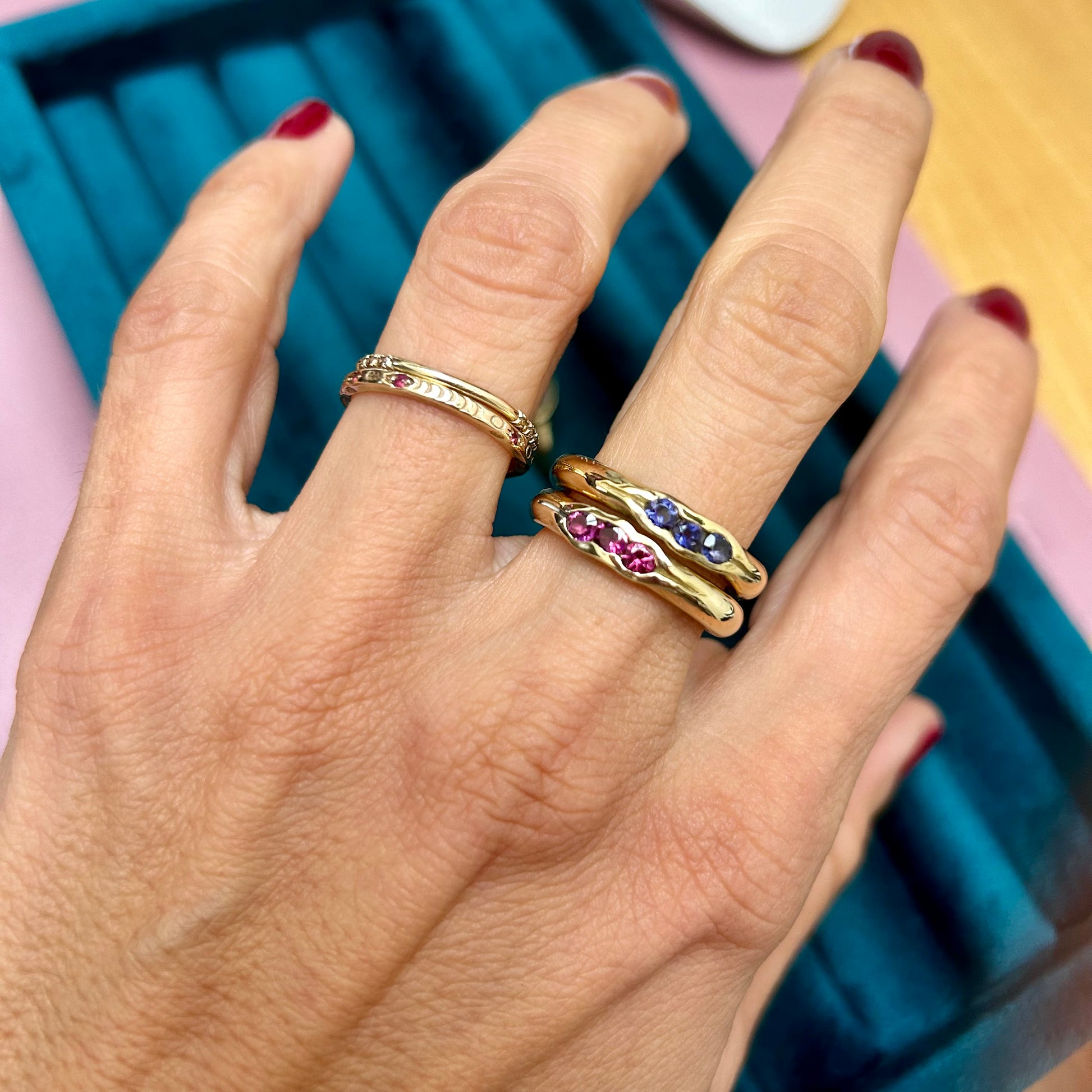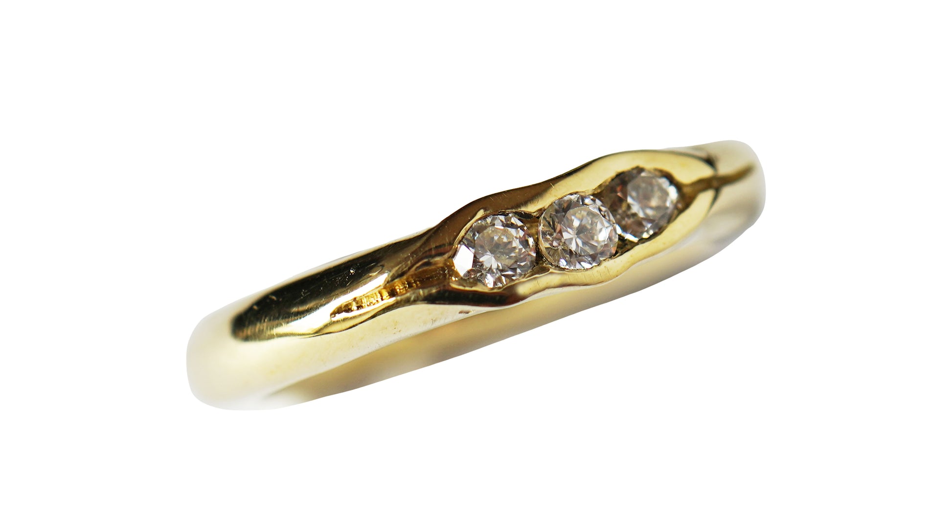 Fascia in bronzo giallo con tre pietre preziose o semipreziose